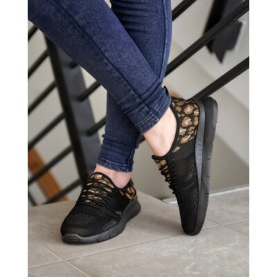 Чорні літні кросівки гуртом. На кросівках леопардовий принт.