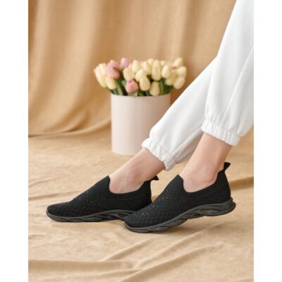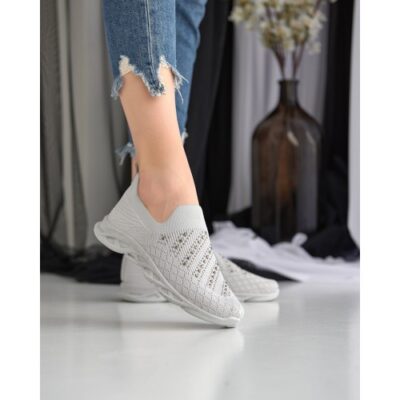 Кросівки жіночі без шнурків. Модель на фігурній підошві з блискучими камінчиками.
