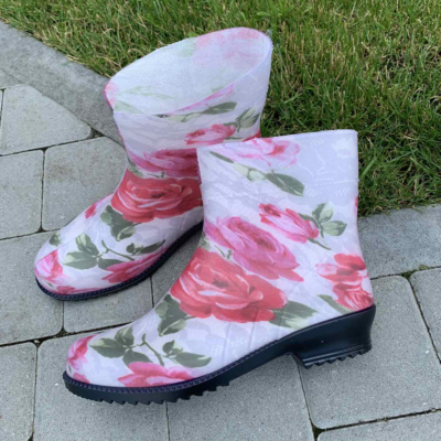 Напівчобітки гумові жіночі Троянди на білому