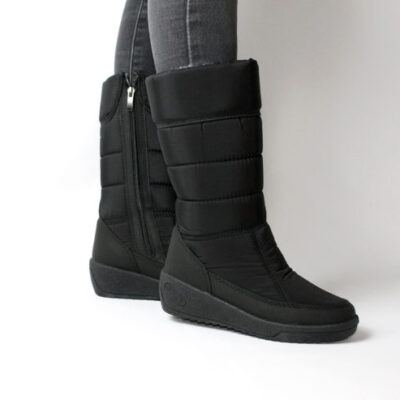 Чоботи жіночі комбіновані з верхом з текстильних матеріалів ( плащівка) на литій підошві із ПВХ.
